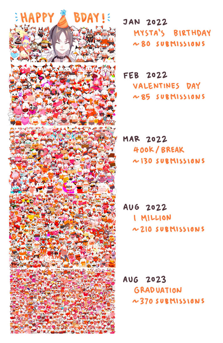 Timeline, project structure & recruitment, community art boards, letter, fanart, food submissions, vocal submissions, thumbnail project